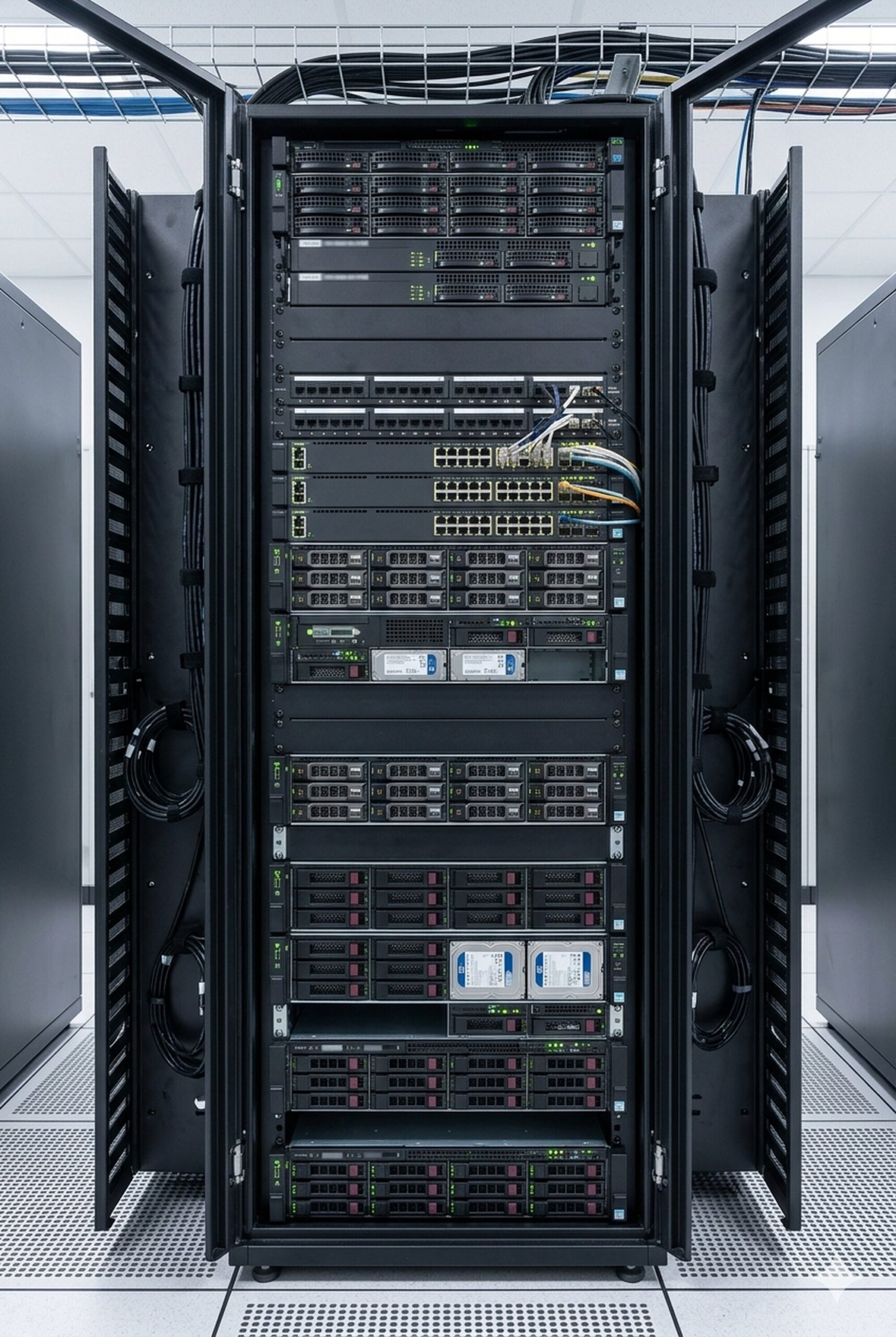 AI data center infrastructure includes the physical systems that support compute environments, such as racks, enclosures, containment systems, and structural components required for high-performance hardware.